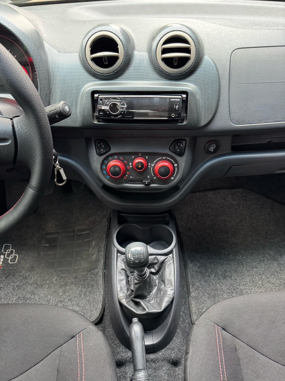 Versão esportiva com rodas de liga leve 15, faróis máscara negra, faróis de neblina, calhas de chuva, ar-condicionado, direção hidráulica, faixas laterais cinza e vermelha, spoiler e descarga esportiva.