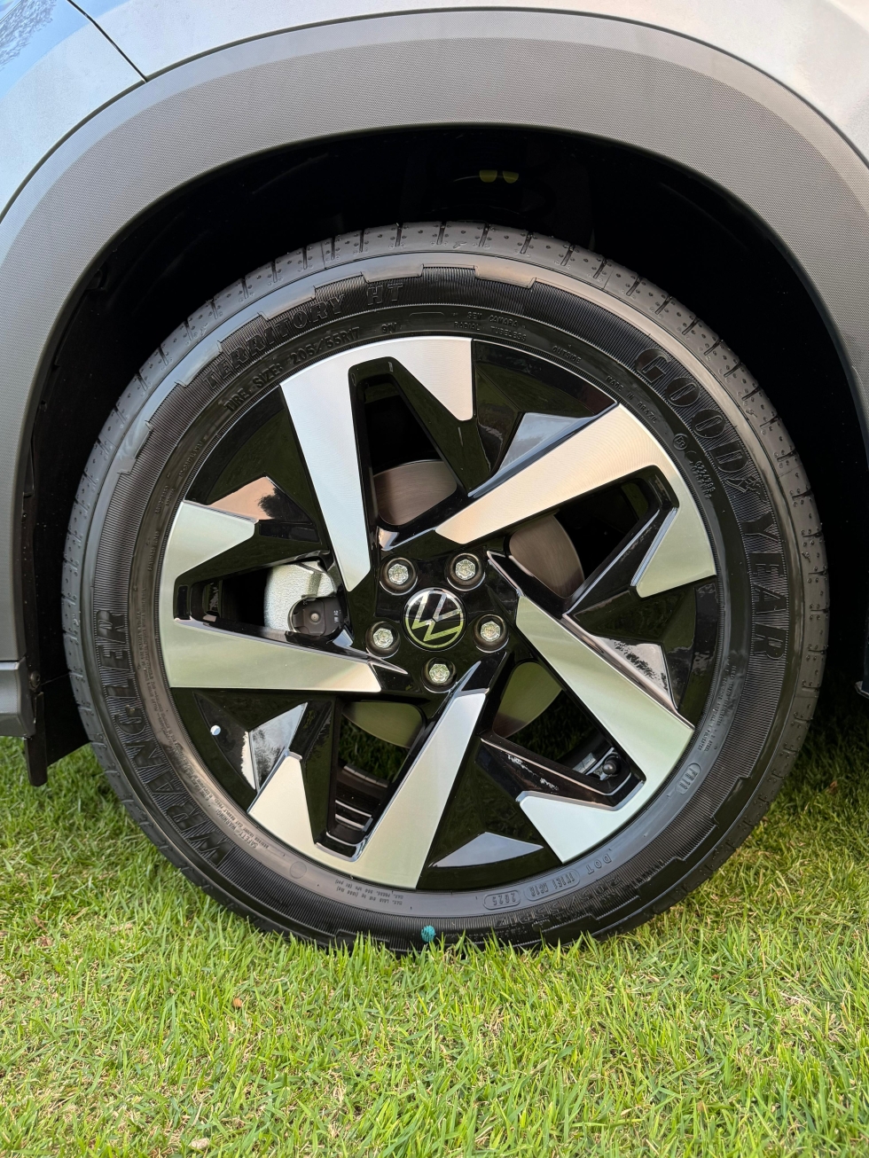 O design segue a nova identidade da Volkswagen, com uma dianteira robusta e uma grade que remete a nova geração da Tiguan.