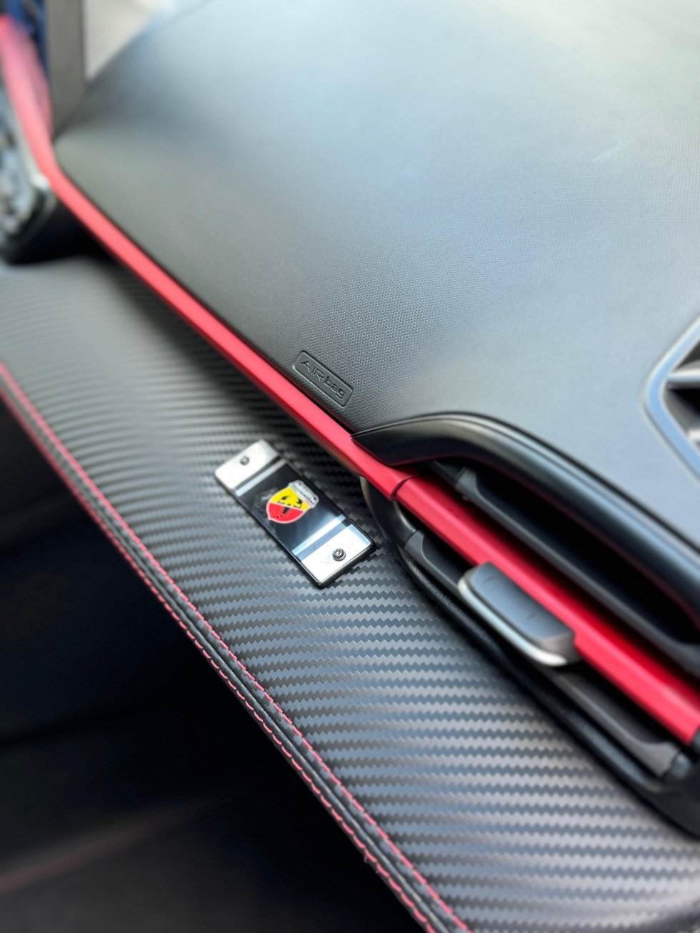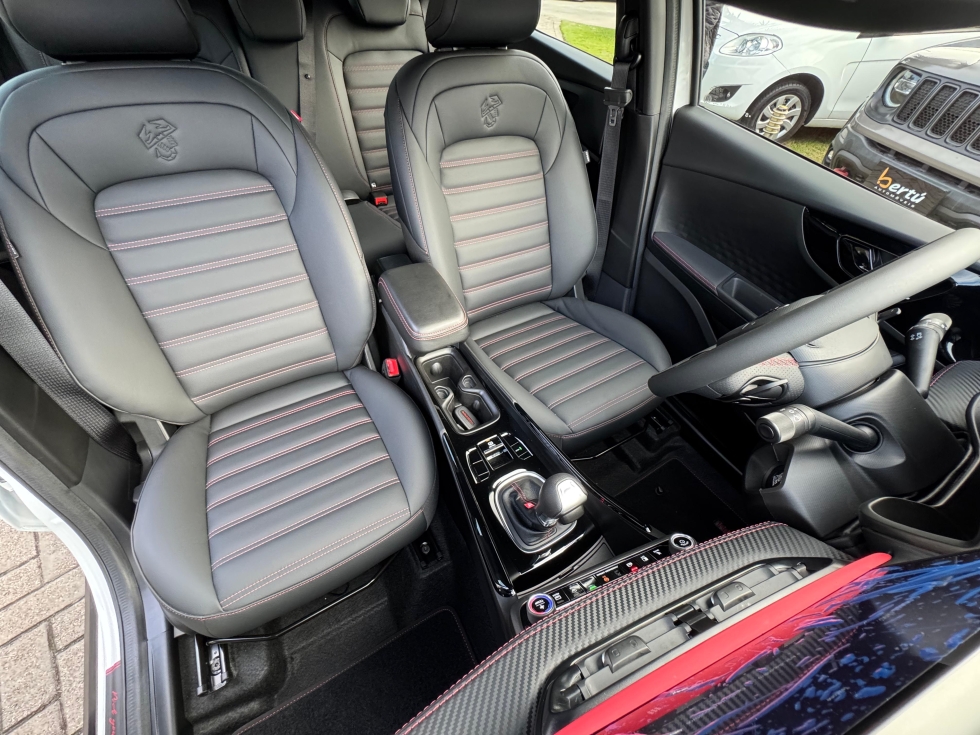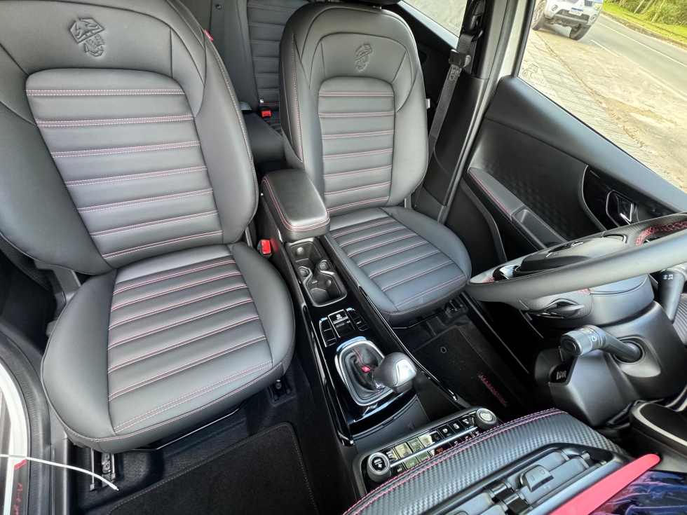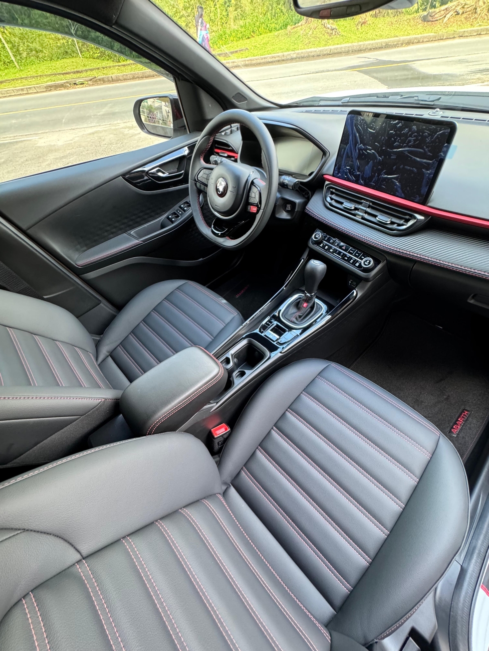 Esse conjunto de cor e opcionais faz dele um carro exclusivo, o interior que é todo em couro com costuras exclusivas da ABARTH, tem ainda painel em fibra de carbono, Teto, Rodas e retrovisores todos em BLACK PIANO, acerto de suspensão e direção para proporcionar uma experiência dinâmica e única para quem o dirige. 🏸